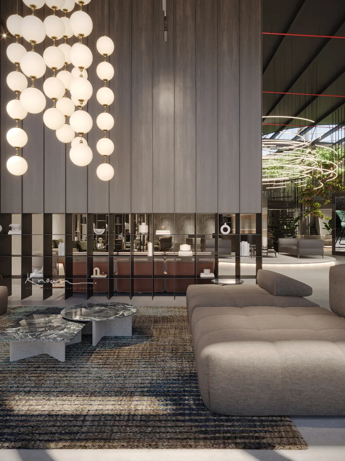 Every corner of the showroom is thoughtfully staged to highlight contemporary Italian craftsmanship—where tactile materials, iconic silhouettes, and curated vignettes speak to a refined, international clientele. A seamless fusion of design, ambience, and brand storytelling, this showroom elevates the furniture retail experience into an immersive journey of style and sophistication.