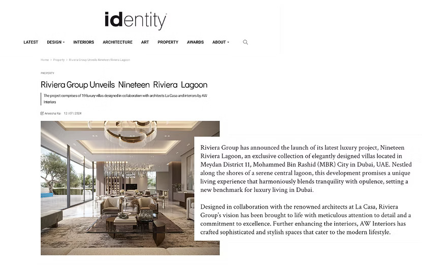 Discover Nineteen Riviera Lagoon, the latest luxury project by Riviera Group in Meydan District 11, MBR City, Dubai. This exclusive collection of 19 elegantly designed villas showcases interiors by AW Interiors, in collaboration with architects La Casa.