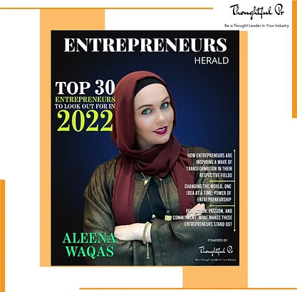Aleena has been featured in the "Top 30 Entrepreneurs to Look Out For in 2022," recognized for her relentless drive and passion to revolutionize her field. This list highlights the top entrepreneurs who are significantly impacting their industries and advancing innovation.